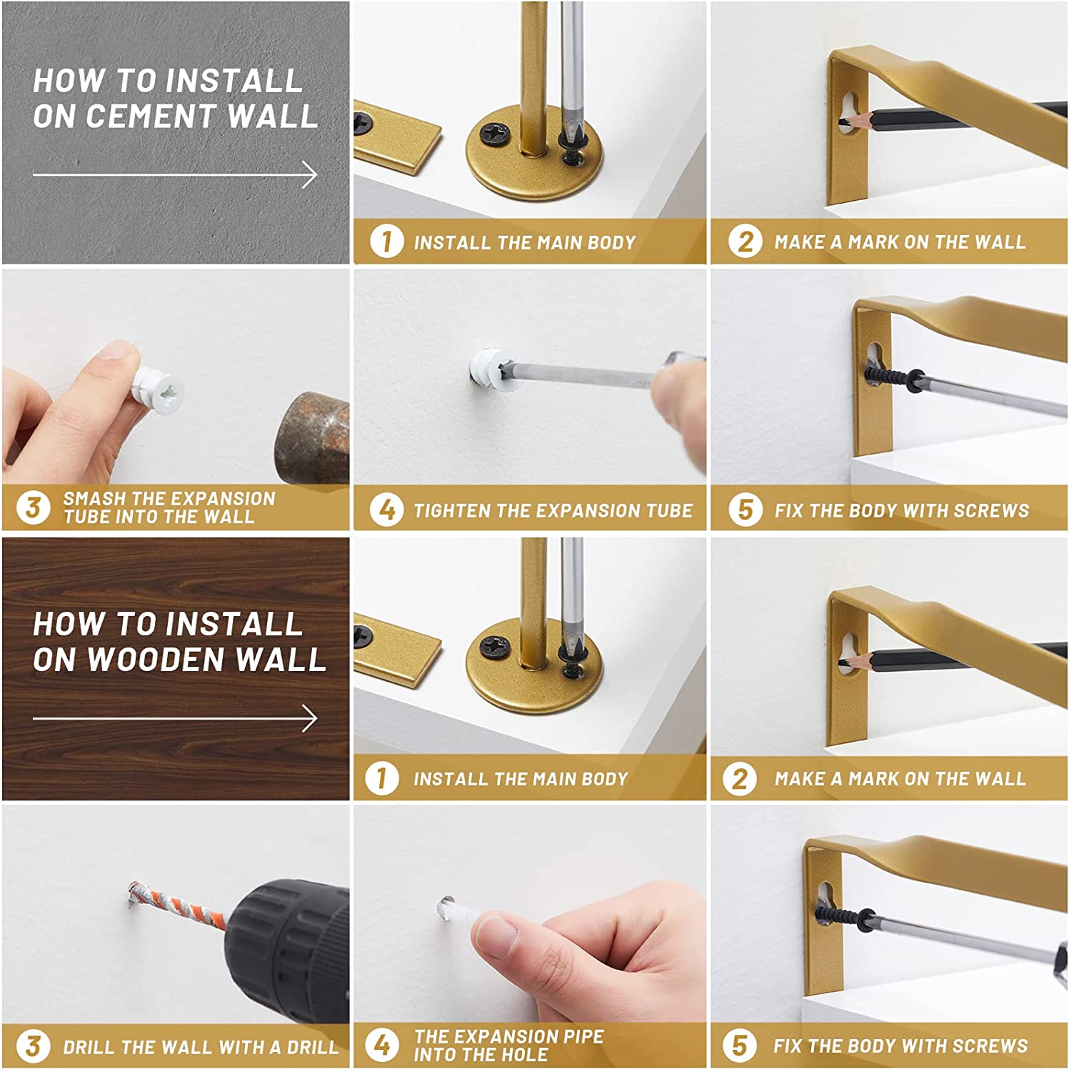 • Easy Install on Any Wall - Whether you have drywall or concrete our hanging shelves 2 pack has both sets of screws and anchors to ensure you enjoy an easy install. To ensure a smooth process when installing your shelves we include detailed easy to follow instructions for a headache-free installation in minutes