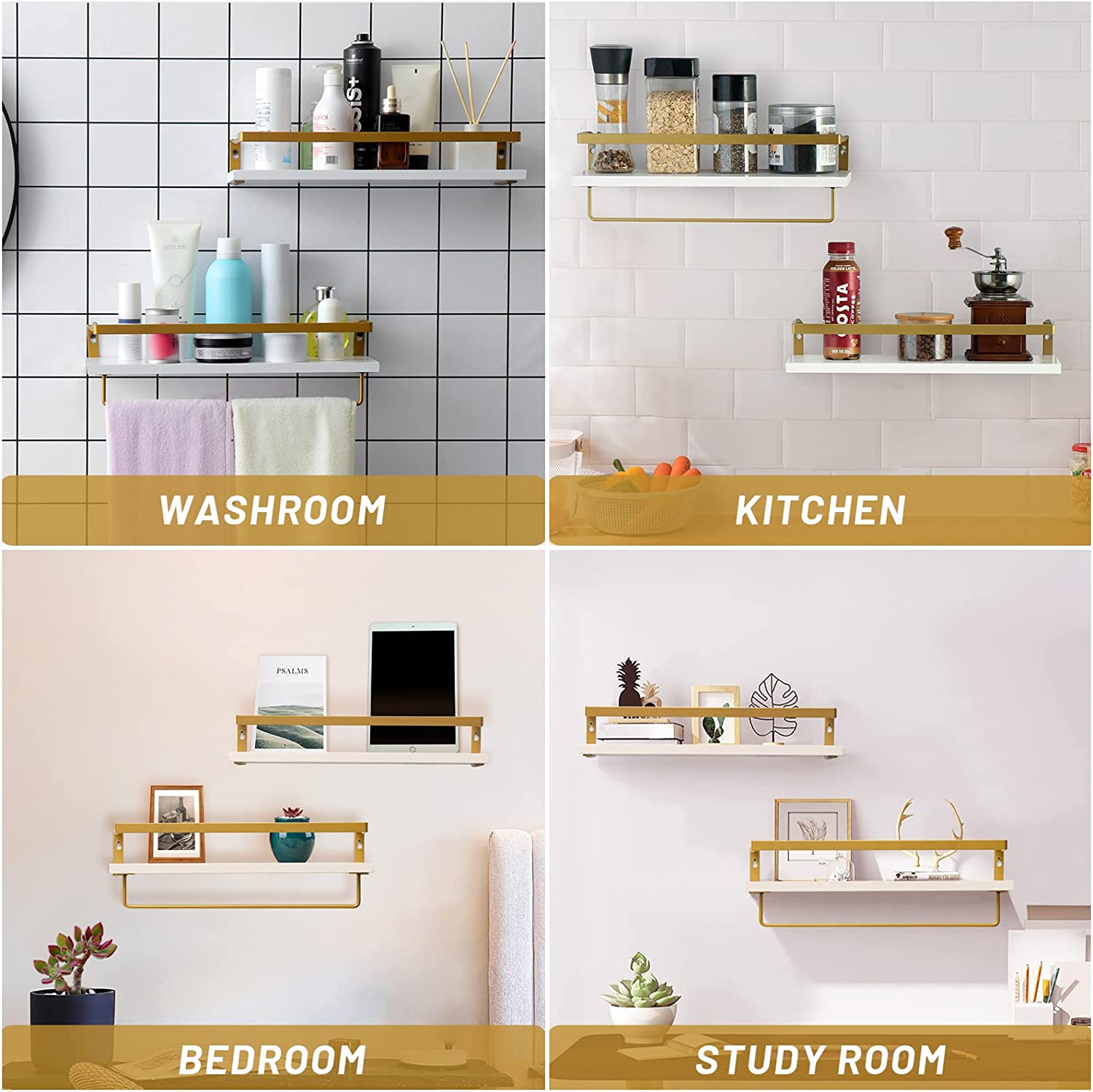 • Every Room - With stylish rustic shelves you can bring a fresh look to any room in your home. Use as floating bookshelves, bathroom shelf organizers, wall storage for office decor, floating plant shelf wall shelving, bookshelves wall mount shelf, bathroom shelf over the toilet or to hold any shelf decor items